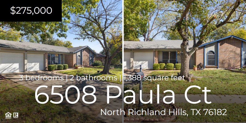 Welcome to this charming single-story home nestled in the peaceful Glenann Add subdivision of North Richland Hills. This property offers a welcoming open-concept layout with a light-filled living area anchored by a wood-burning fireplace that flows into a spacious kitchen and dining area, ideal for both everyday living and entertaining.The home features three comfortable bedrooms and two full bathrooms. The primary suite offers generous closet space and privacy, while the additional bedrooms are nicely sized perfect for family, guests, or a private home office. The home sits on a quiet lot in a well-established neighborhood with sidewalks and tree-lined streets.Outside, enjoy a private fenced backyard with a covered patio and room for outdoor living perfect for morning coffee, evening BBQs, or children to play. With easy access to schools, parks, shopping, and convenient commuting routes, this home combines suburban comfort with urban convenience.Whether you’re a first-time homebuyer, a small family, or investor looking for a solid rental property, this home offers a warm, functional, and move-in-ready opportunity in a desirable North Richland Hills community.